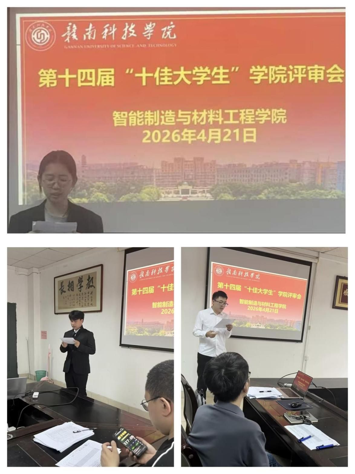 评选过程,参评员工依次上台进行展示,他们结合自身经历,从思想成长、学业成绩、实践经历等方面,生动讲诉了自己的成长感悟。他们中,有深耕专业、斩获多项学科竞赛奖项的“学霸”,有勇于创新、积极投身科研实践的探索者,还有兼顾学业与员工工作、服务同学的员工骨干。现场评审小组成员根据参评员工的现场展示和支撑材料进行客观评分,确保评选过程公平、公正、公开。
