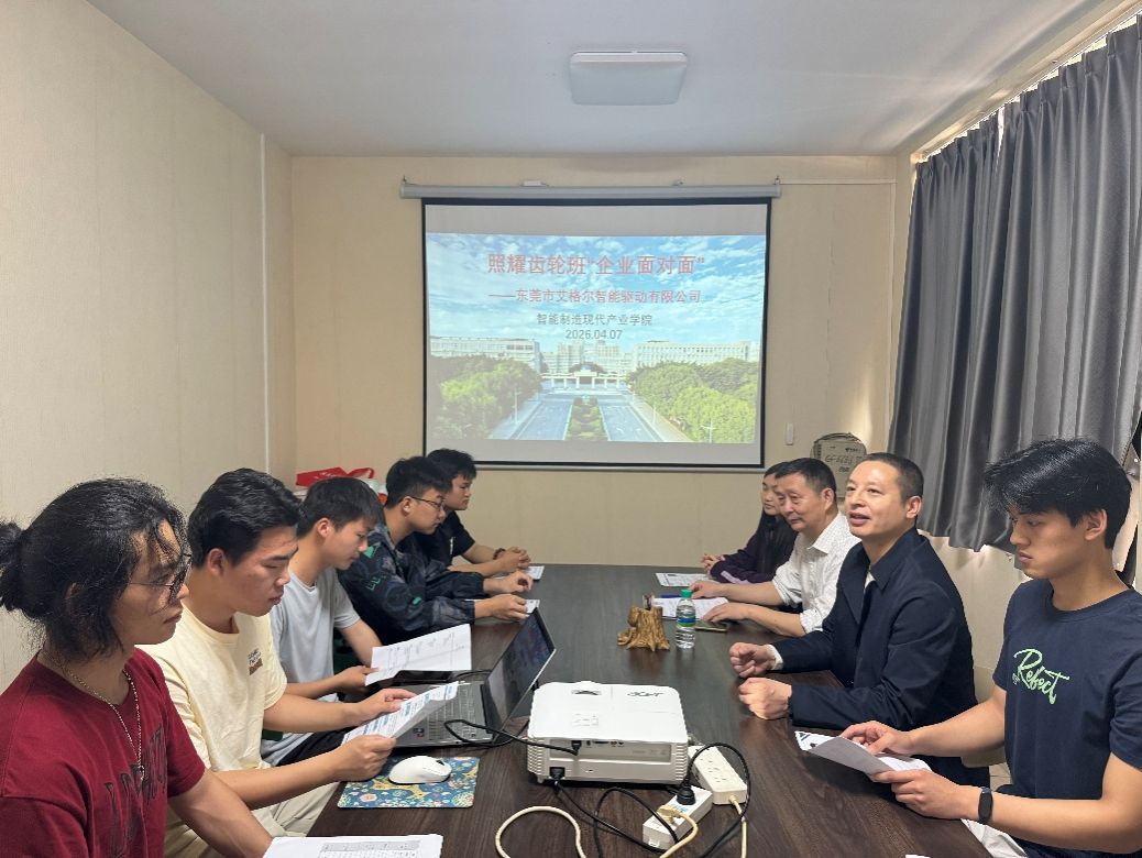 本网讯:为持续深化产教融合协同育人机制,推动人才培养与产业需求精准衔接,4月7日,智能制造现代产业学院举办“照耀齿轮班”企业面对面活动。东莞市艾格尔智能驱动有限公司总经理马建军一行来校交流,智能制造现代产业学院执行院长刘辉、照耀齿轮班班主任及师生代表参加活动,并同步开展实习招聘专场宣讲与面试选拔。